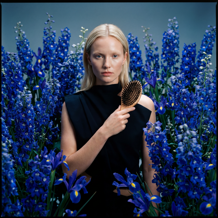 Atraktivní designový kartáč z pravými kančími štětinami určený pro dlouhé vlasy.